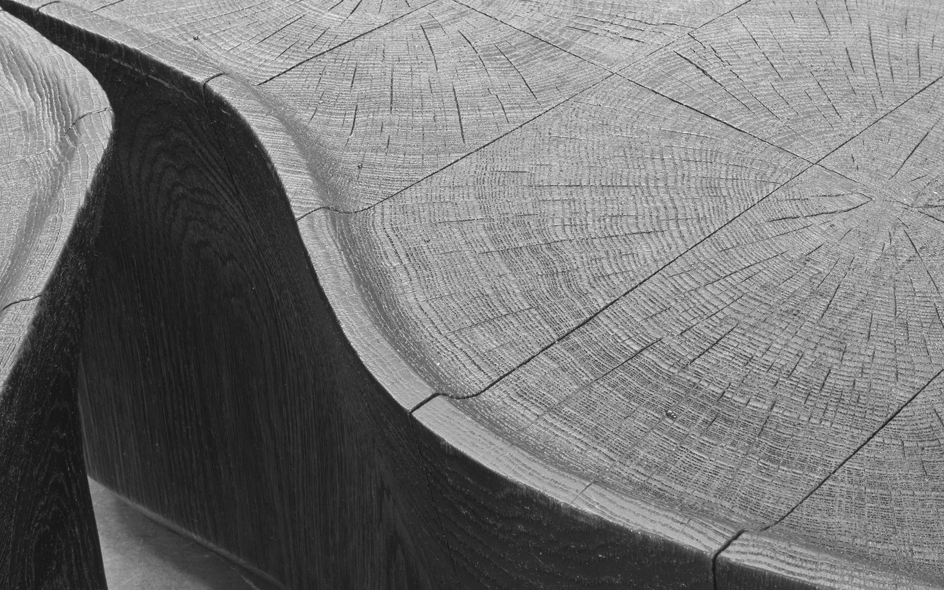 Set of coffee tables in burnt oak wood. Limited edition with eight copies, two prototypes and two artist’s copies. All the pieces are numbered and signed.