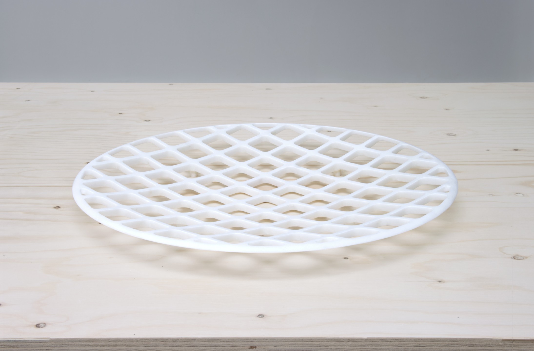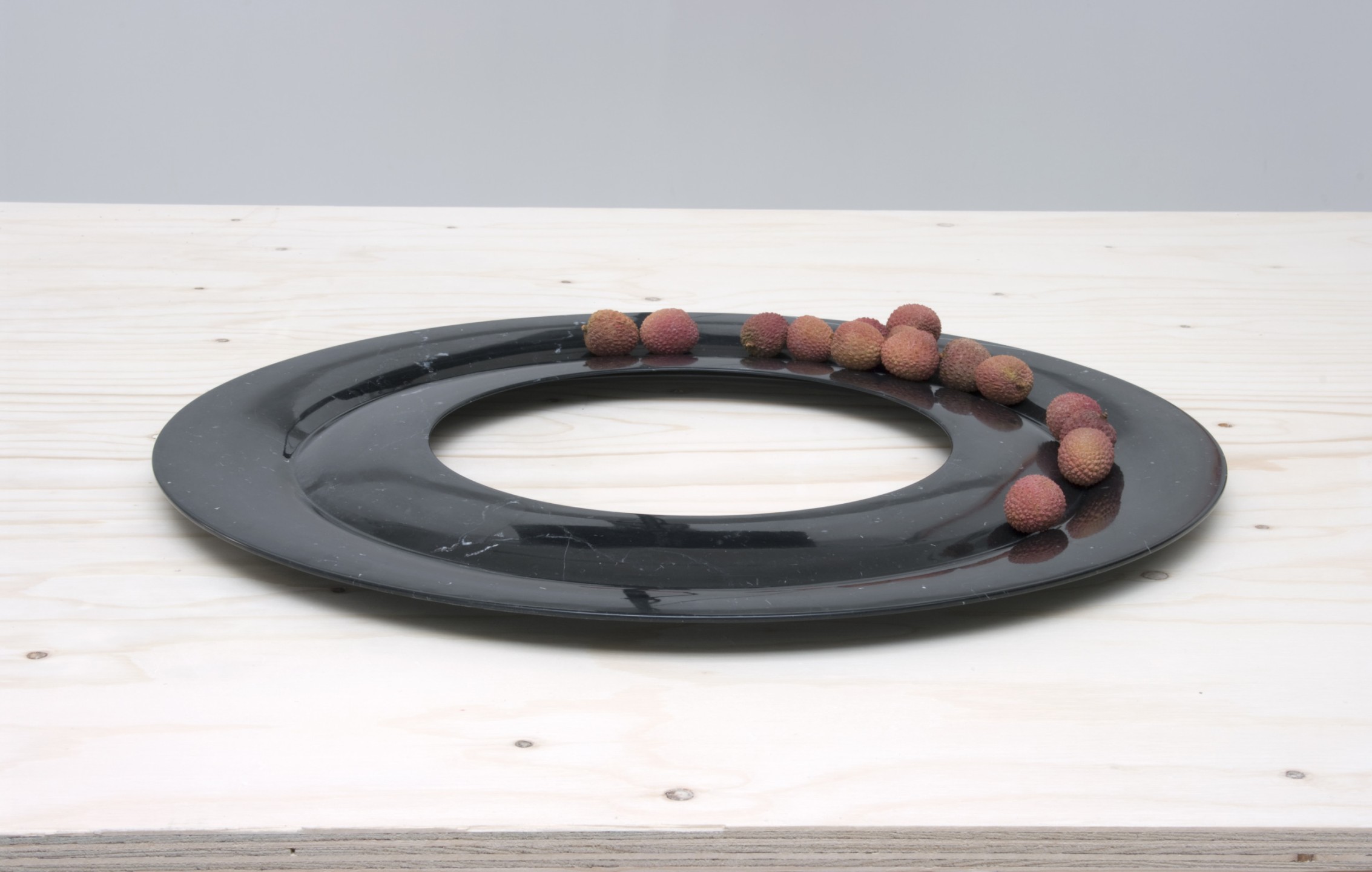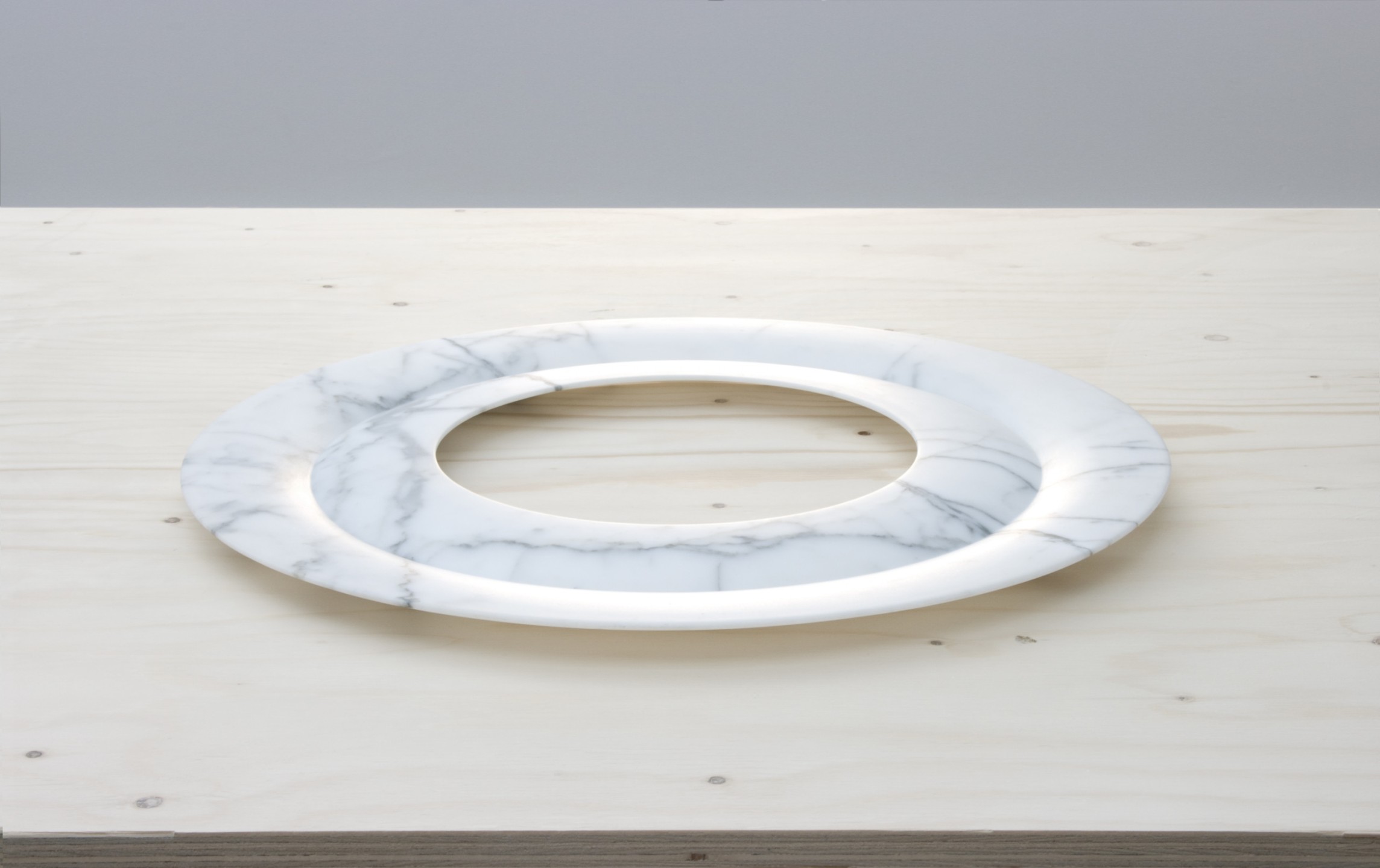 Coupes en marbre noir ou blanc à profil en “V”. Le marbre est usiné jusqu’à devenir le plus fin possible. Diamètre 60 cms. Édition limitée à 8 exemplaires, 2 prototypes et 2 exemplaires d’artiste. Pièces numérotées et signées.